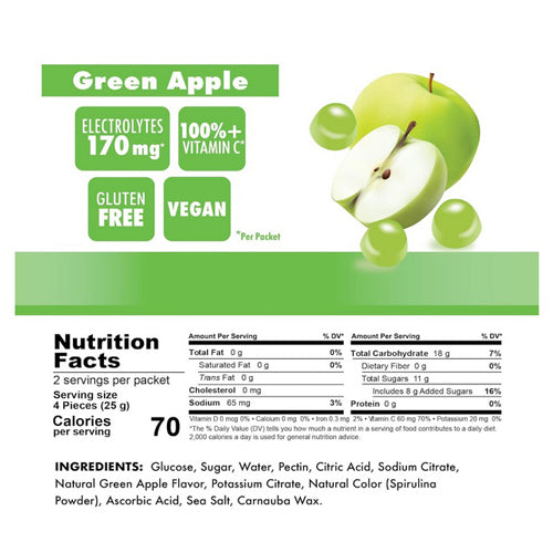 Bursting with juicy green apple goodness and packed with vital electrolytes, Green Apple Energy Chews give you clean, easily digestible, great-tasting fuel to energize your day!