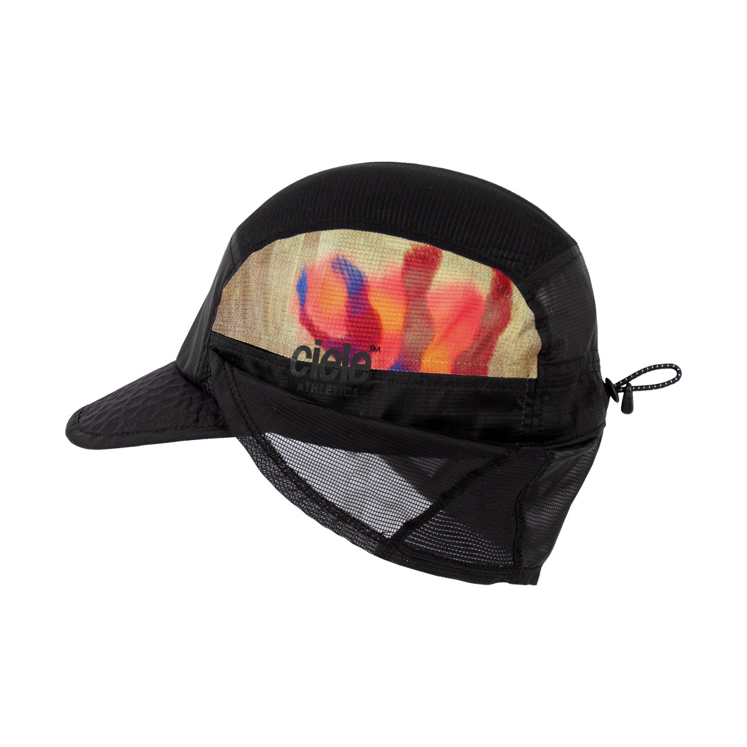 Lightweight RAYaway mini ceramic ripstop works as a shield to reflect and keep your head cool. COOLmatic | EXP SKAYAmesh™ on the top and sides dumps heat and uses carbon to regulate temperature. A 270º shield folds down in extreme sunlight to give ears and neck the protection needed. ciele's PHORMrite brim brings a fused fit and significant weight reduction.