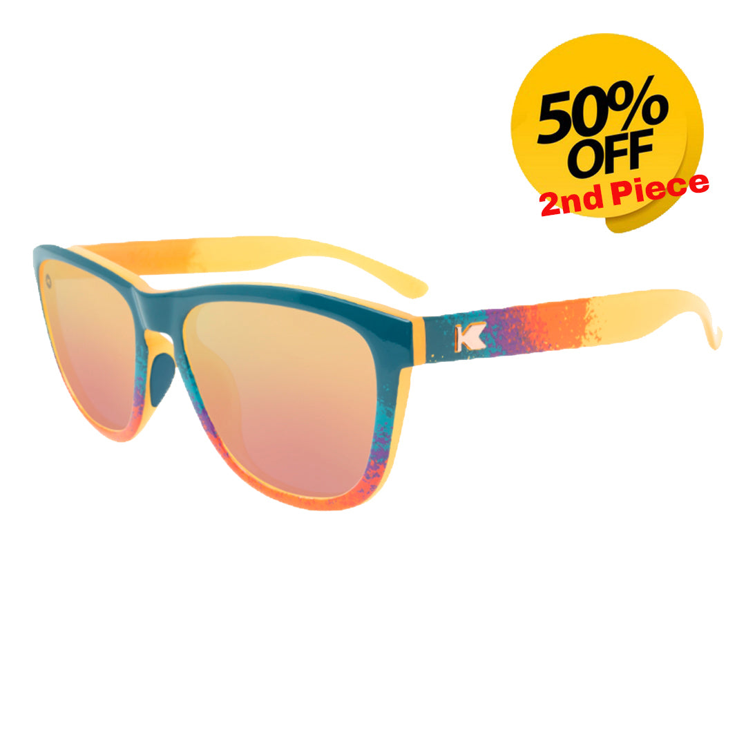 Inspired by the deep, vibrant sunsets of California’s golden deserts, these vivid shades will be right by your side the next time you decide to take a hot midday run (more sweat, more fun, right?). A speckled sunset fade paints the front of the frame, then blends seamlessly down the arms, mimicking the unforgettable colors of a soon-to-be-twilight sky. Knockaround Sport frames are lightweight, comfortably fitted, and look great on most face shapes. Go the extra mile in style when you add Premiums Sport shades to your running routine (just make sure to drink lots of water!).