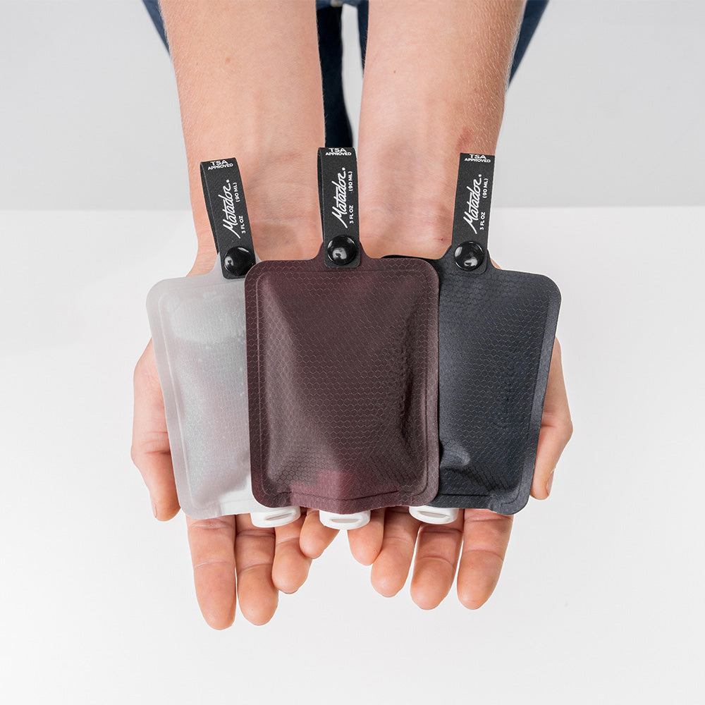 5x lighter and 3.5x more compact* than traditional silicone travel bottles of the same volume. Matador FlatPak™ Toiletry Bottles take up only as much space as their contents and are pliable enough to fit into tight spaces--just like your hydration soft flasks.
