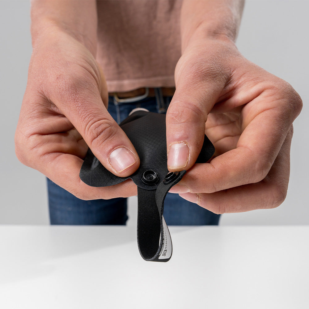 Hypalon® hang loop with snap button is great for clipping or hanging bottle in the shower.