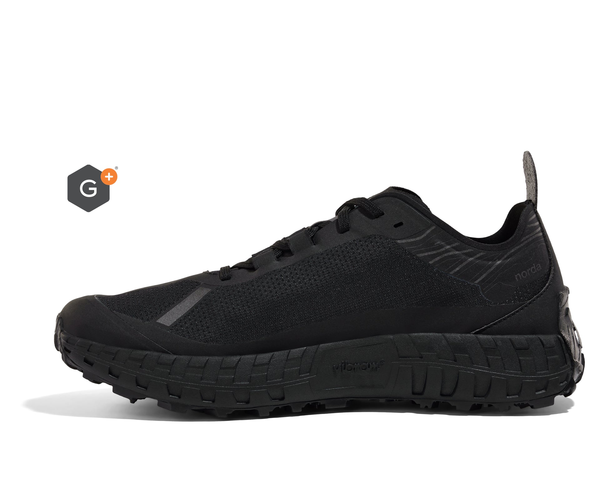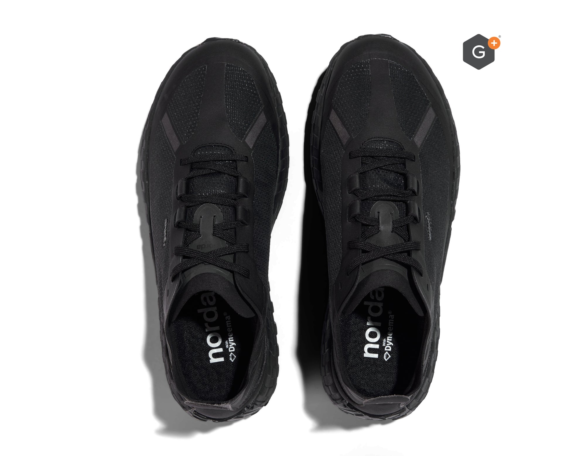 Introducing the norda™ 001 Stealth Black with a G+ Graphene water-resistant membrane. The Stealth Black features the world's first and only bio-based black Dyneema® the world's strongest and lightest fibre™. The all-black upper is lined with a G+® graphene membrane, water-resistant to 10,000mm for additional warmth and dryness, all while remaining highly breathable. The ultimate all-weather training tool.