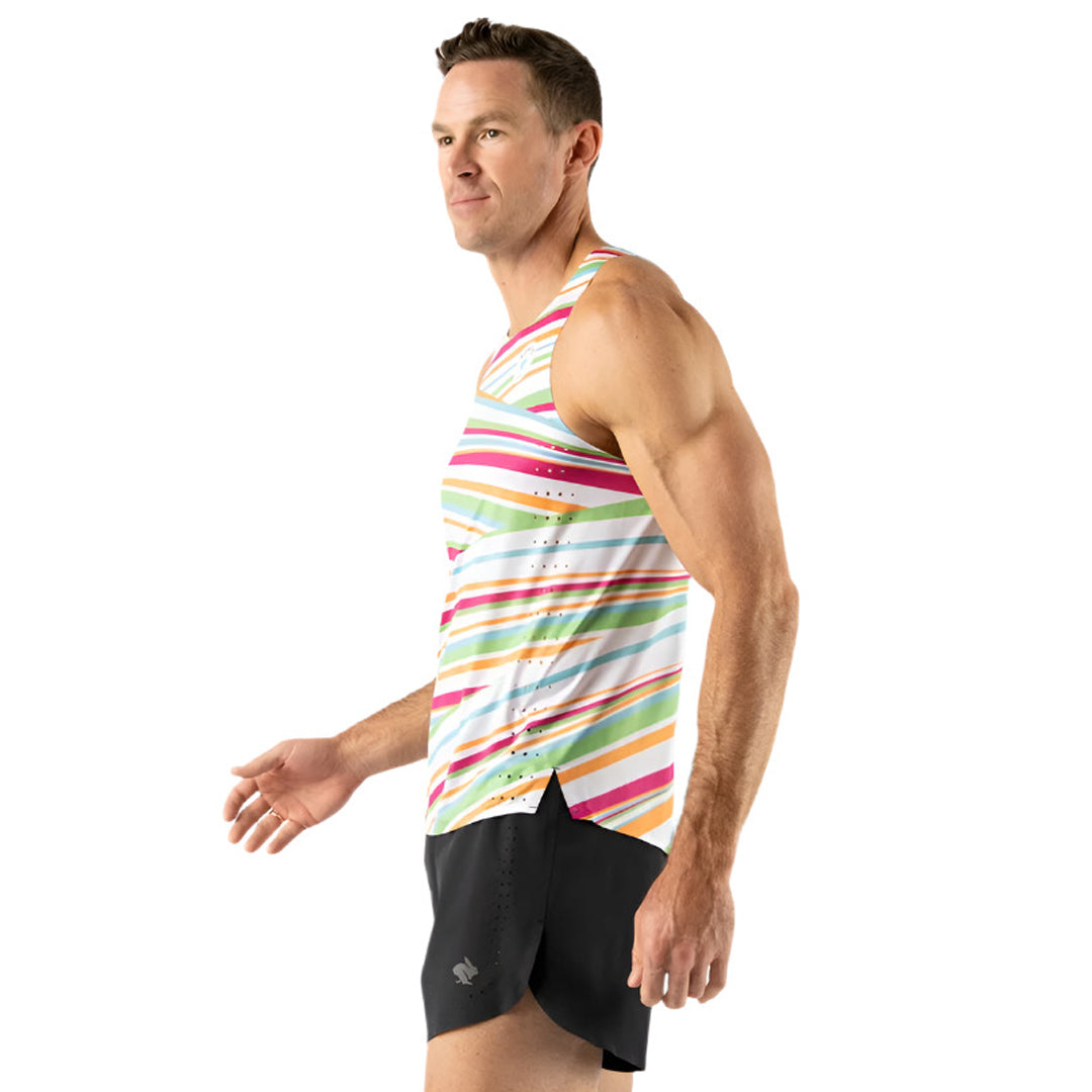 Time to shine in this technical tank. This high performance singlet provides a flattering fit with side slits at the hips, plus a refreshed perf pattern to improve ventilation. Expect the same ultralight fabric with bonded seams for maximum comfort with minimal weight. Streamlined for speed.