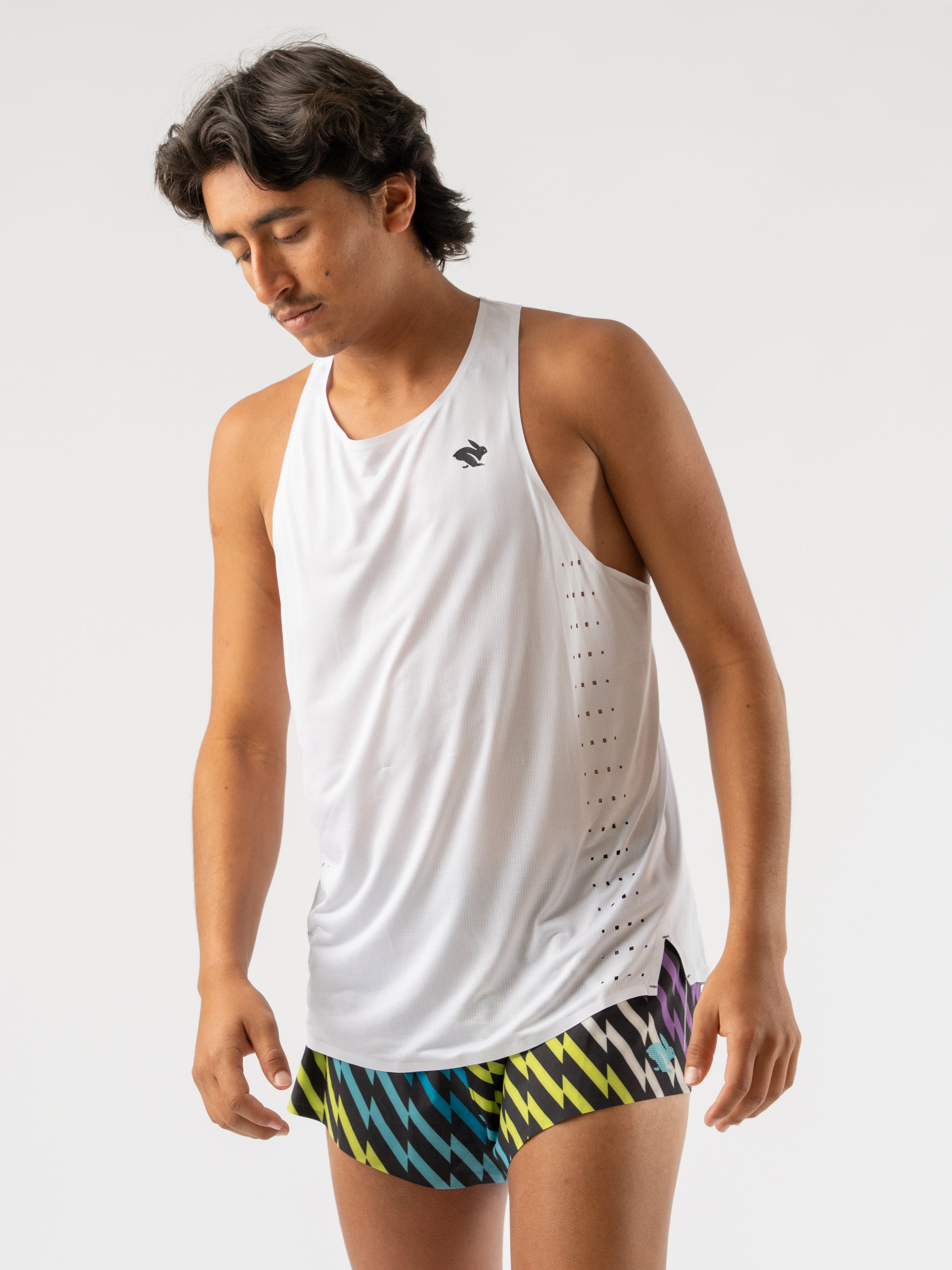 Time to shine in this technical tank. This high performance singlet provides a flattering fit with side slits at the hips, plus a refreshed perf pattern to improve ventilation. Expect the same ultralight fabric with bonded seams for maximum comfort with minimal weight. Streamlined for speed.