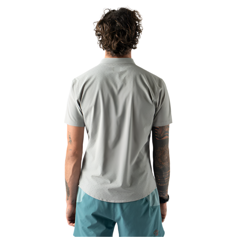 Performance plaid has no limits, and neither do you. A perfed back vents easily. Shoulders comfortably fit a pack. Snap up or layer for an epic day from trailhead to coffeehouse.