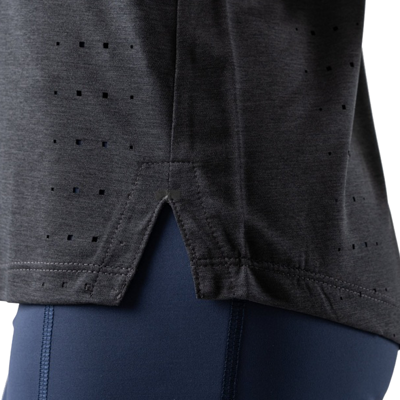 From training run to race day, this versatile tank performs with breathable ease. Made with 100% recycled polyester for ultralight moisture-wicking. Laser cut square perforations throughout front and back let air flow while the micro-textured back further ensures anti-cling performance.