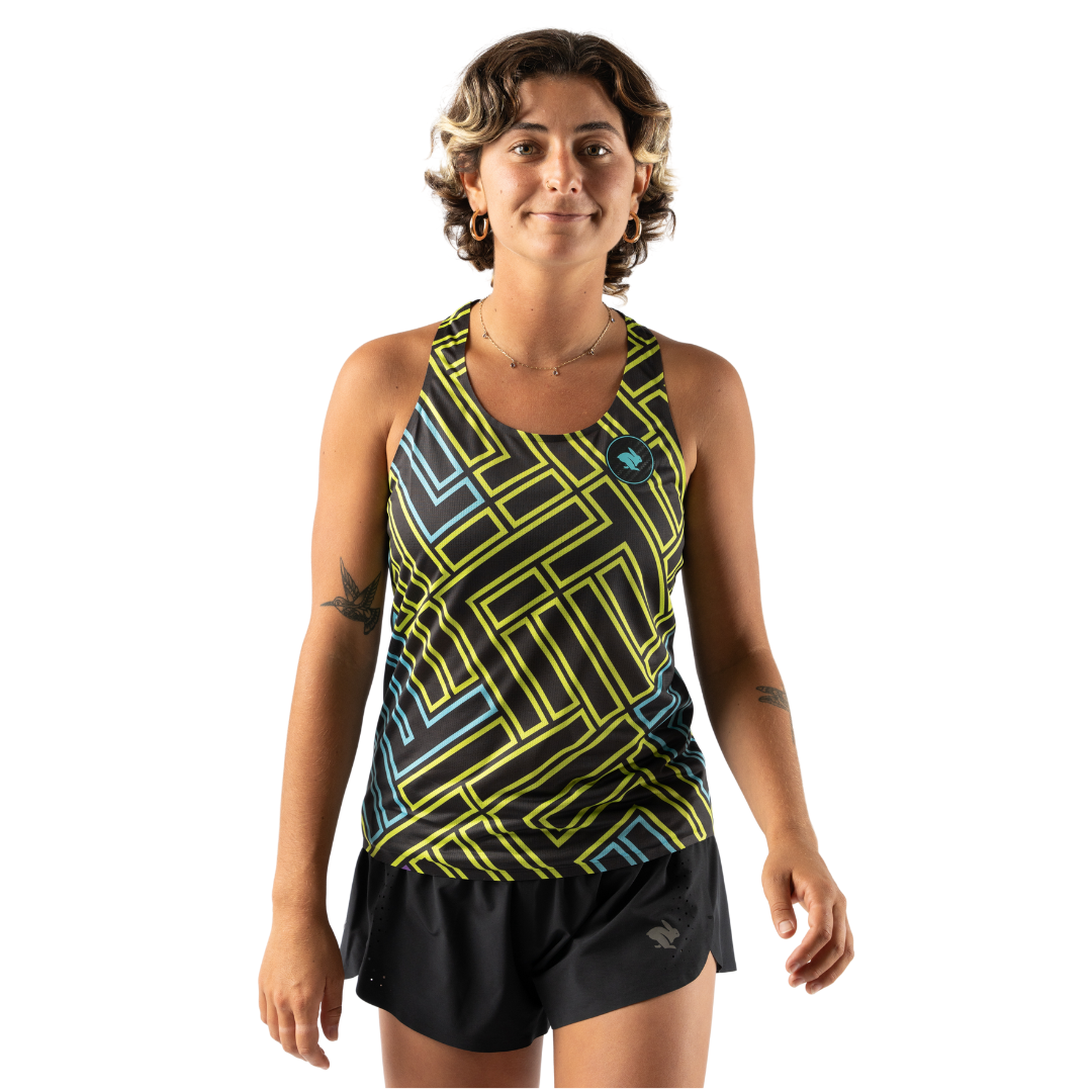 Reach peak speed in rabbit's highest performing race singlet. Their lightest, most technical fabric meets laser-cut and bonded seams plus perfs for maximum comfort with minimal weight. Zoom ahead as if nothing is on.