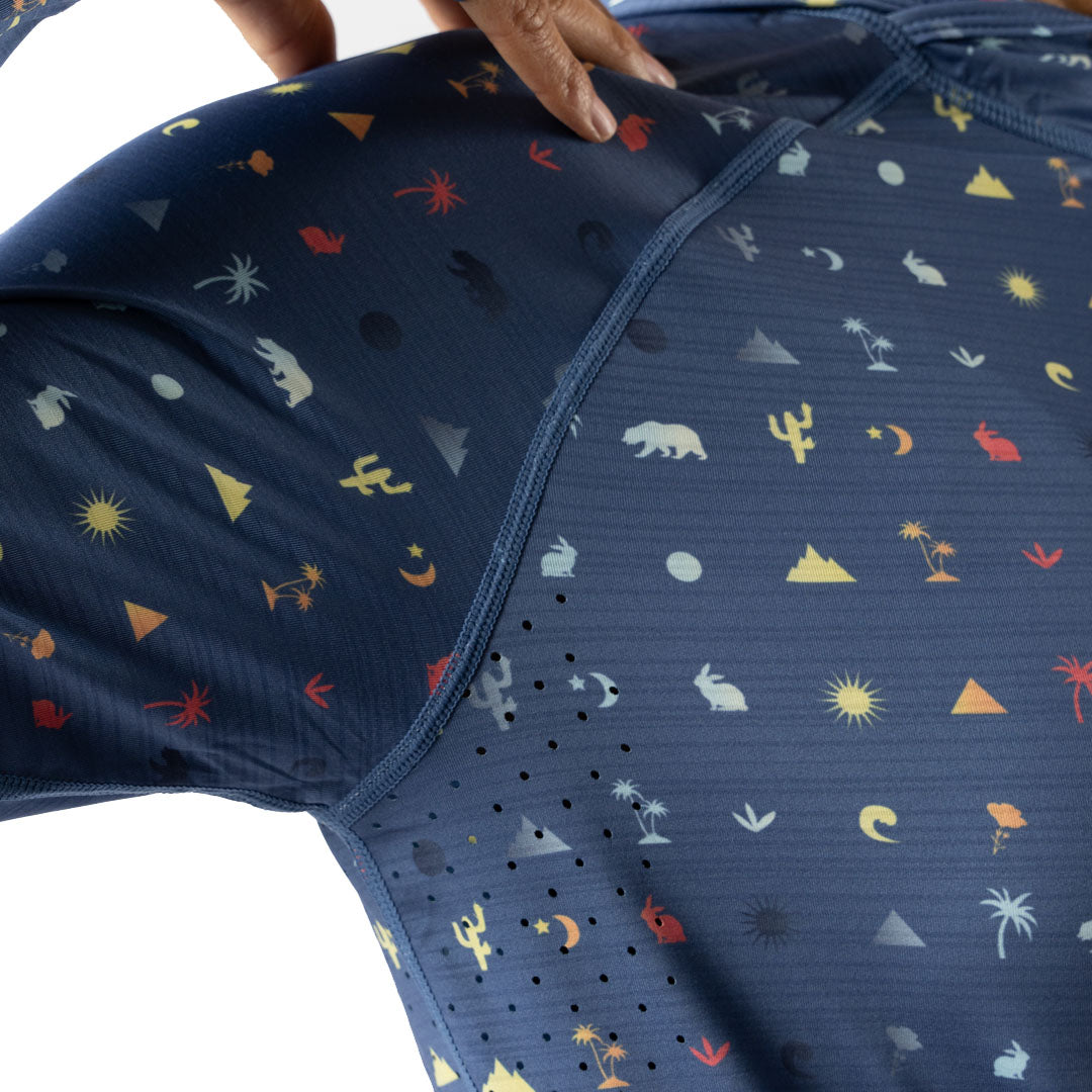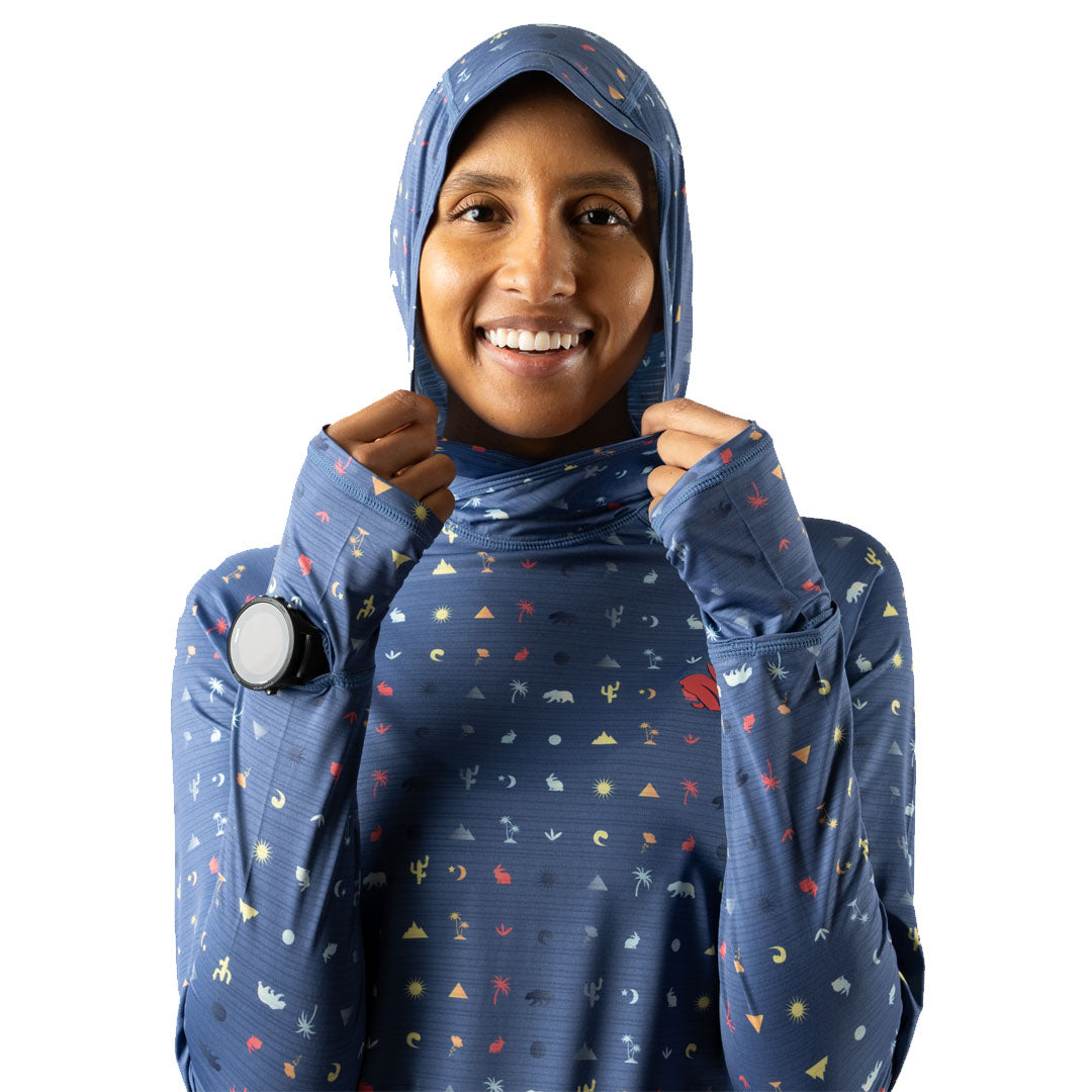 Sun safety feels better than ever. Now with a UPF 50 rating, the 2.0 updates to lightweight jersey with laser-cut perfs under the arms for impressive ventilation. While the scuba-style hood hides the neck and ears from rays, a new built-in brim shades the face and slanted cuffs cover the hands for greater protection. One last surprise: a small zippered pocket in back.