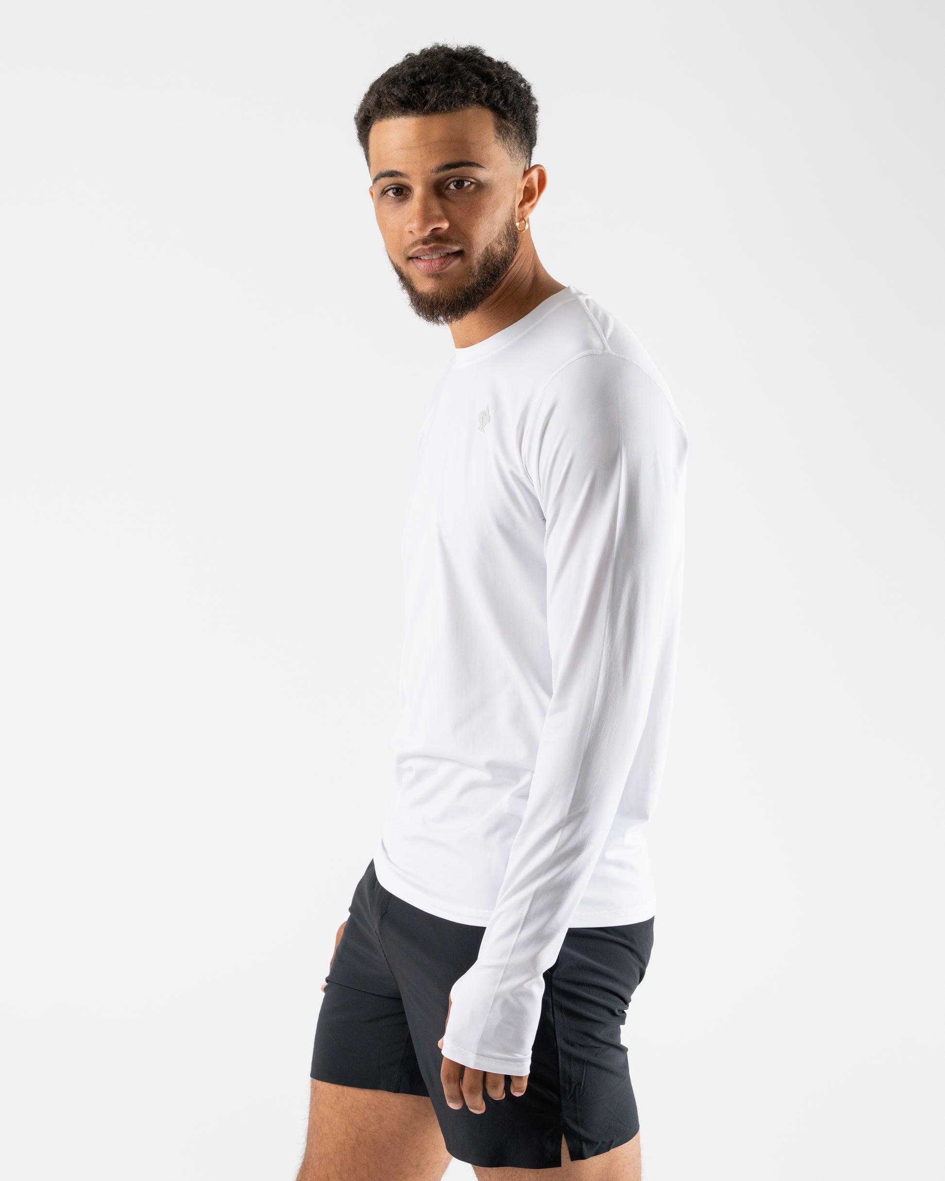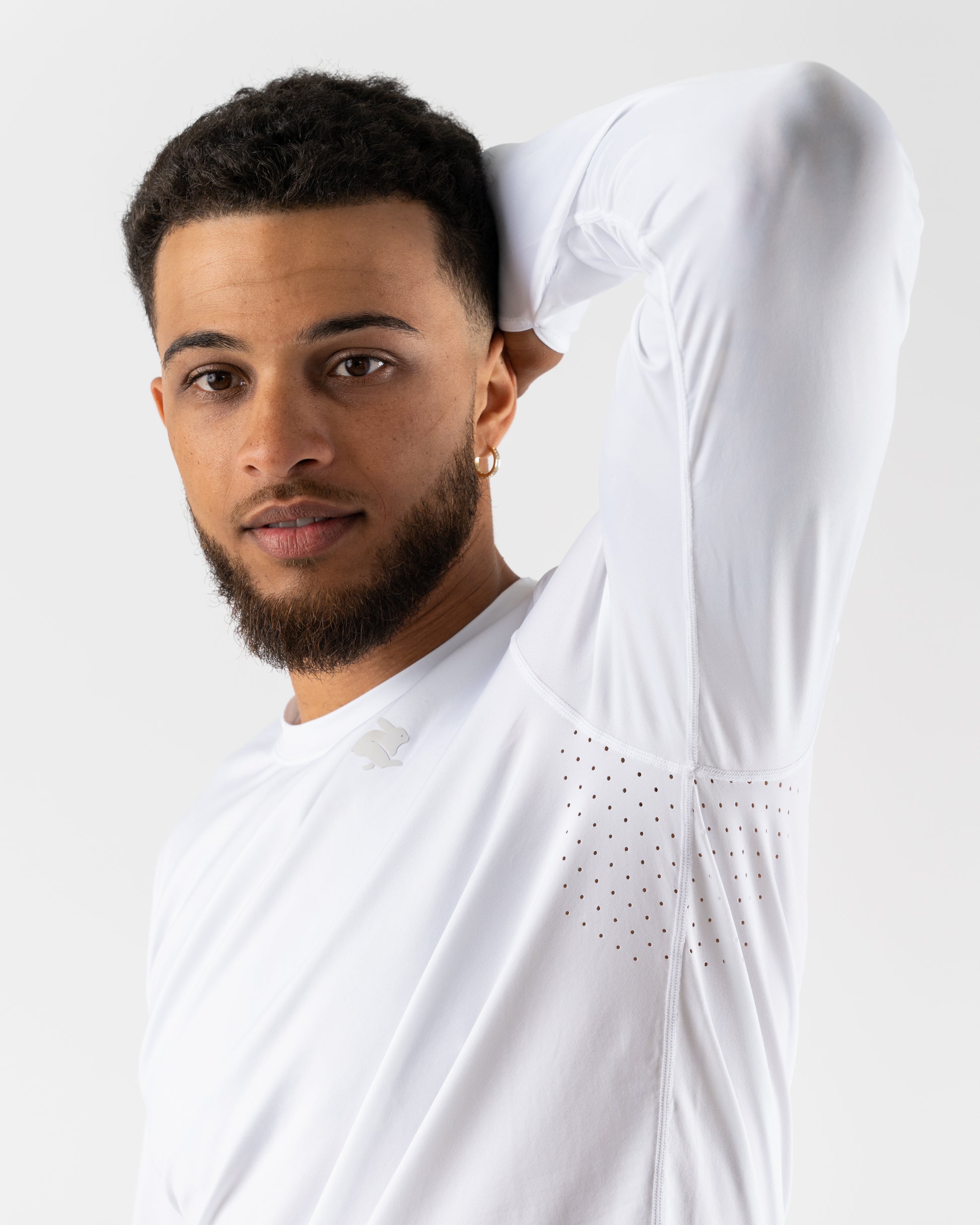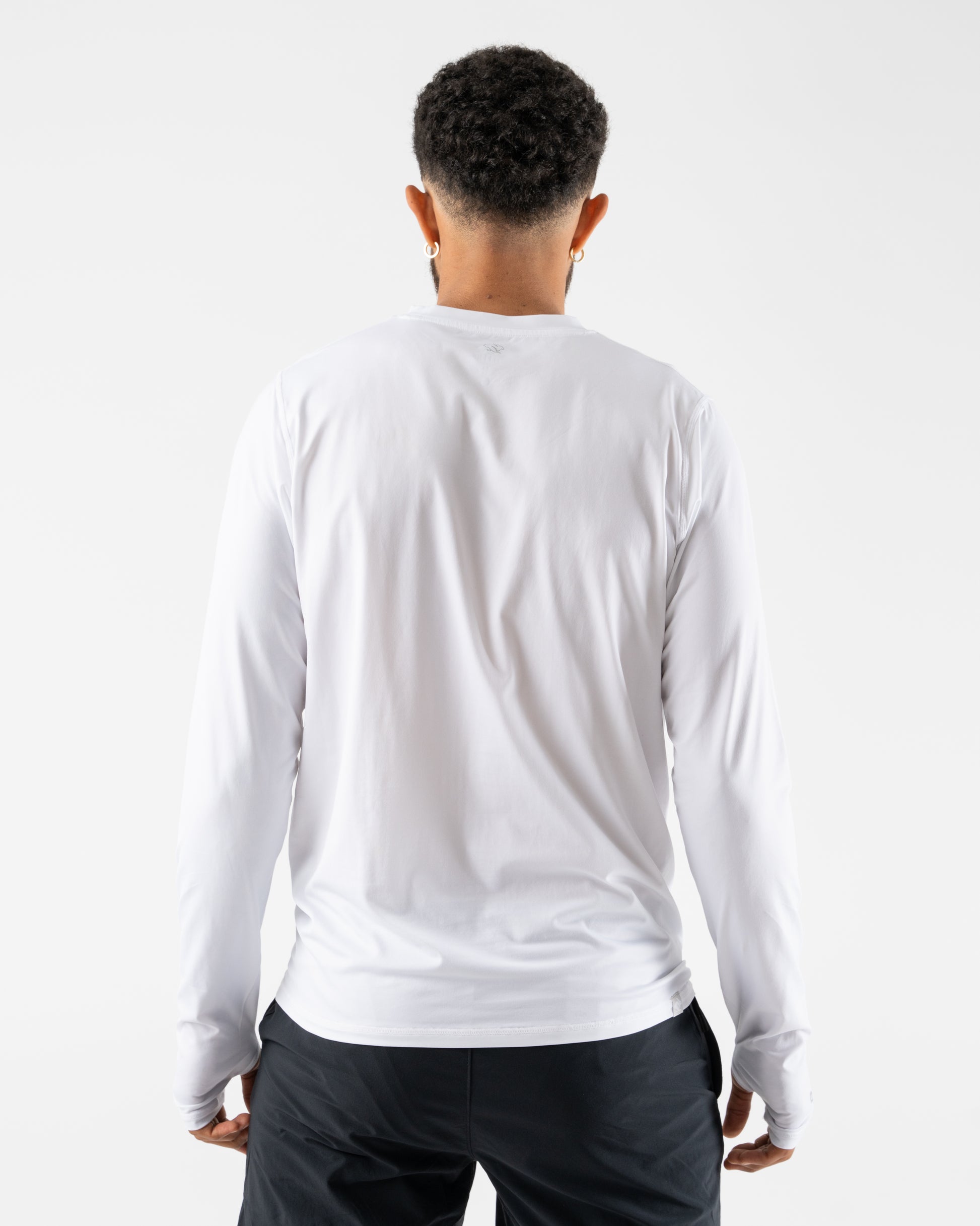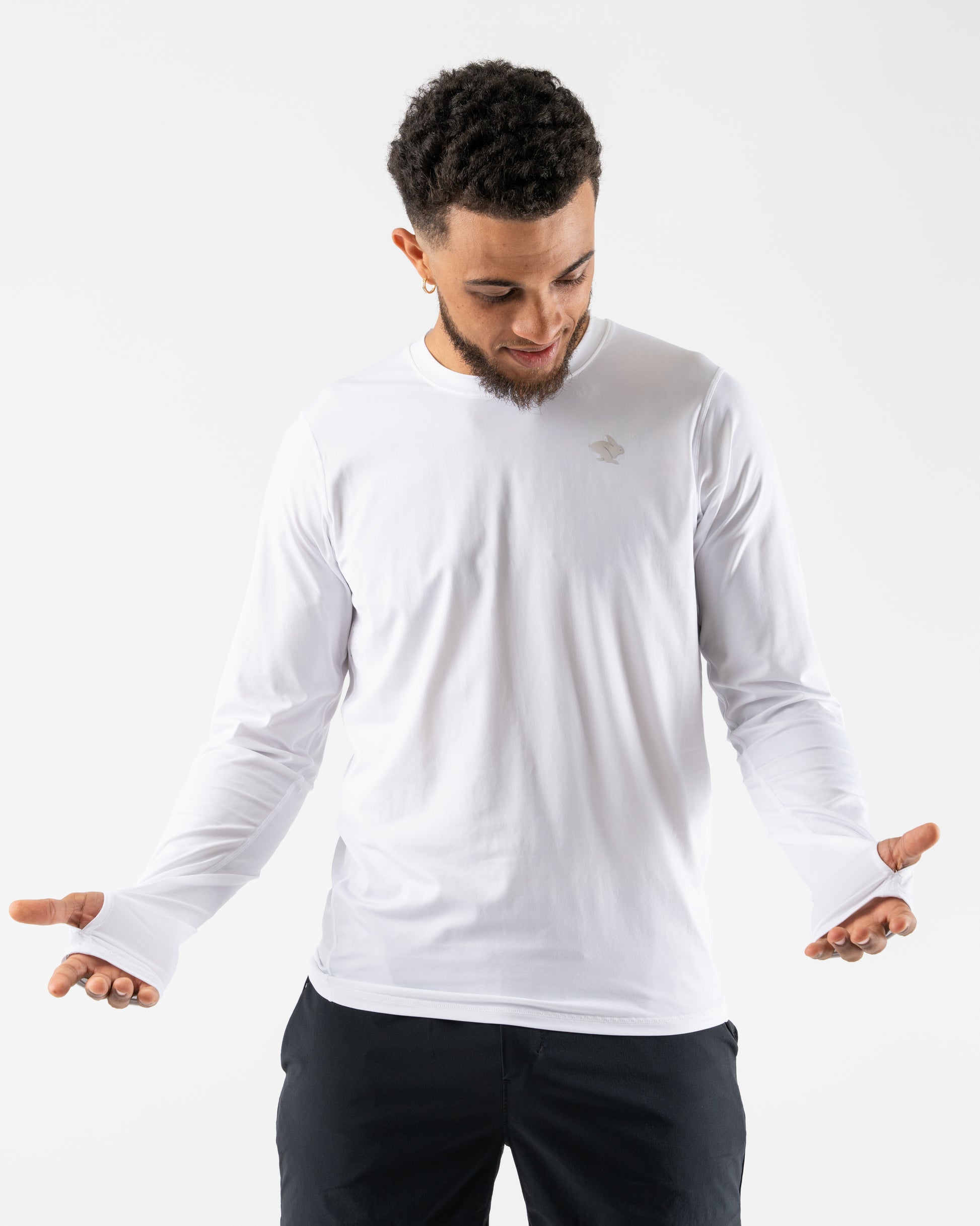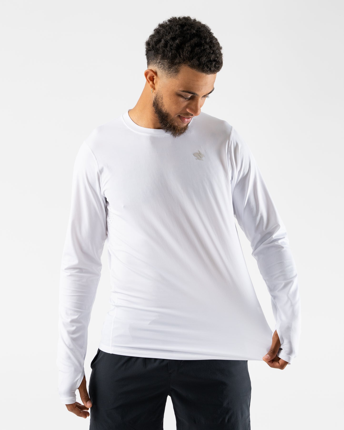 Sun safety just got cooler. Rated at UPF 30+, this new lightweight long sleeve dries quickly, controls odor, and feels cool on the skin as you sweat—all thanks to sustainable nylon made from recycled coffee grounds. Even as longer cuffs with thumboles extend coverage on your hands, laser cut perfs under the arms add breathability.