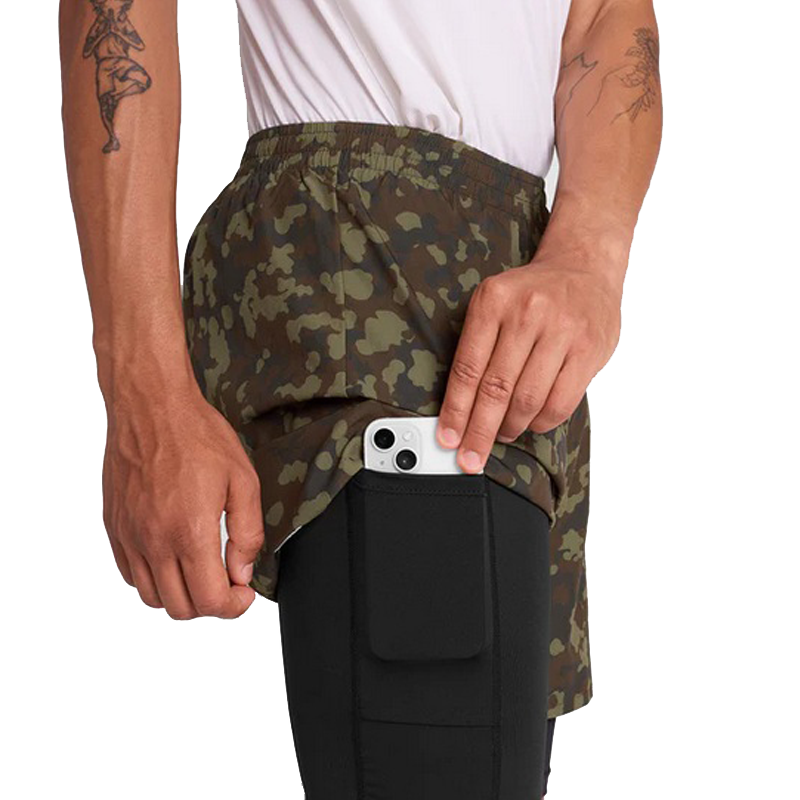 Saysky - 2 in 1 Camo Pace Shorts 5'' - Brown - Men's