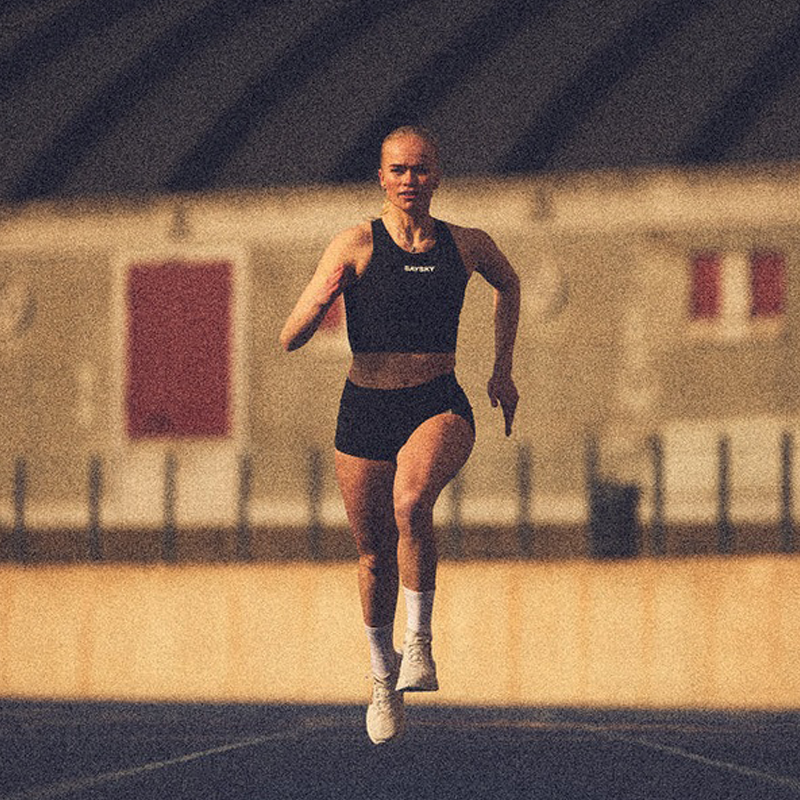 - Outer crop top made of SAYSKYDRY Performance Fabric: soft, lightweight and technical wicking abilities to keep you dry and comfortable on the run.