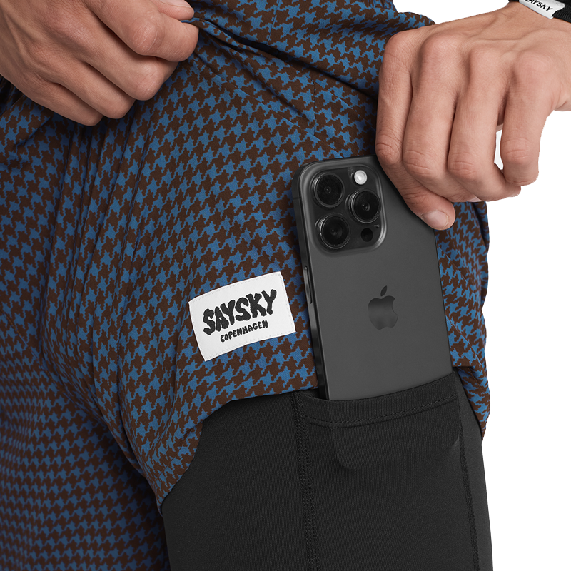 Saysky - Houndstooth 2 in 1 Pace Shorts 5'' - Blue - Men's