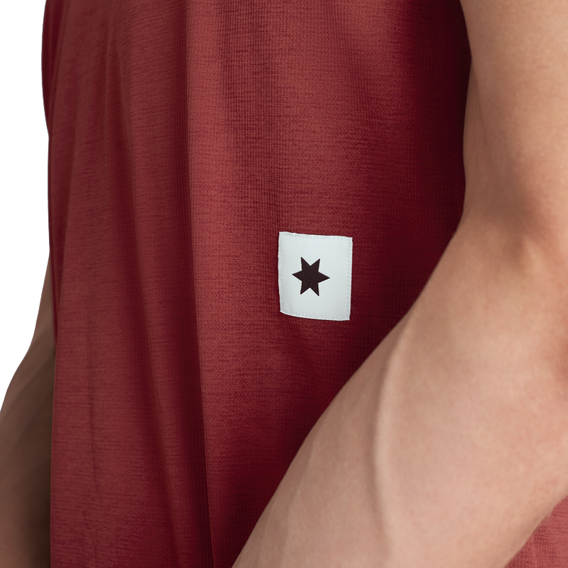 - Waffle fabric construction for improved anti-cling and sweat evaporation.