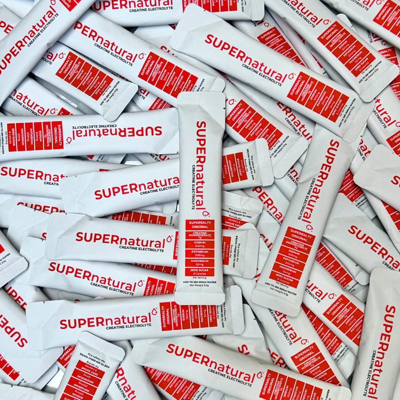 Designed with 500mg of sodium for everyday use, for lighter sessions or rest days without missing your daily creatine. On heavier training days, stack it with a sachet of SUPERnatural+ Rapid Electrolytes to stay properly hydrated.