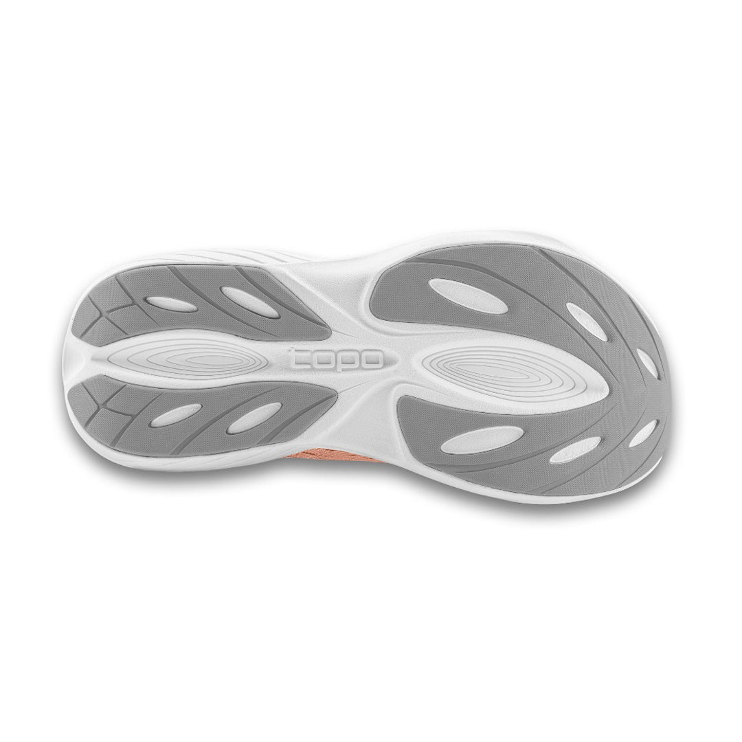 The recycled engineered mesh upper provides a soft and comfortable fit with optimal ventilation. Topo's ZipFoam™ formula provides a soft step in feel, with a lightweight and responsive underfoot experience, while the midsole geometry provides neutral stability. The thoughtfully designed outsole features strategically placed rubber in high-abrasion areas for long-lasting durability.