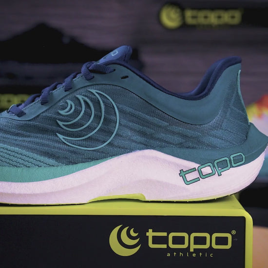 Discover Topo's award-winning fast and light performance trainer, the Topo Athletic Cyclone 2 running shoe. The full Pebax Powered® midsole delivers a highly responsive, seriously lightweight, and energetic ride. The airy mesh upper offers optimal ventilation, with a fit so light and secure, it disappears around your foot as you move. The rocker design aids in a fast transition, while the lightweight die-cut rubber outsole of this trainer offers weight relief with optimal traction and durability.