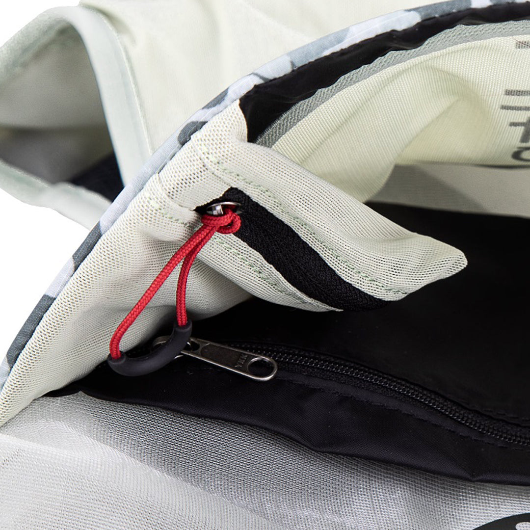 The main back compartment is designed to lay flat when empty while the 4-way stretch mesh accommodates a large capacity.