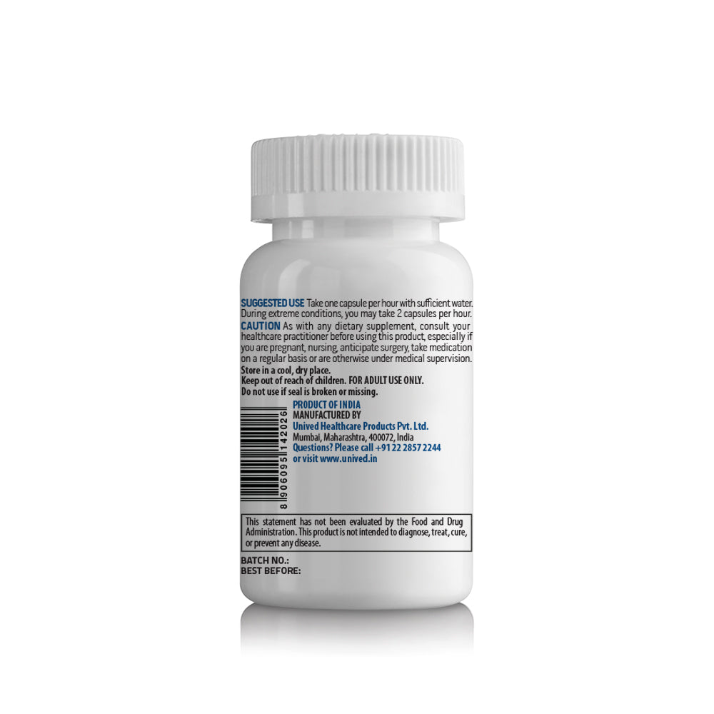 RECOVERY & ENDURANCE - Electrolytes are crucial for energy and muscle movement while you’re on the go. As you exercise, you sweat and lose many of these crucial electrolytes, hence rehydration is necessary as it avoids muscle cramps, fatigue, and tightening of muscles. Unived Salt Capsules are formulated to help you recovery quickly and maintain your stamina, while also replenishing your lost minerals.