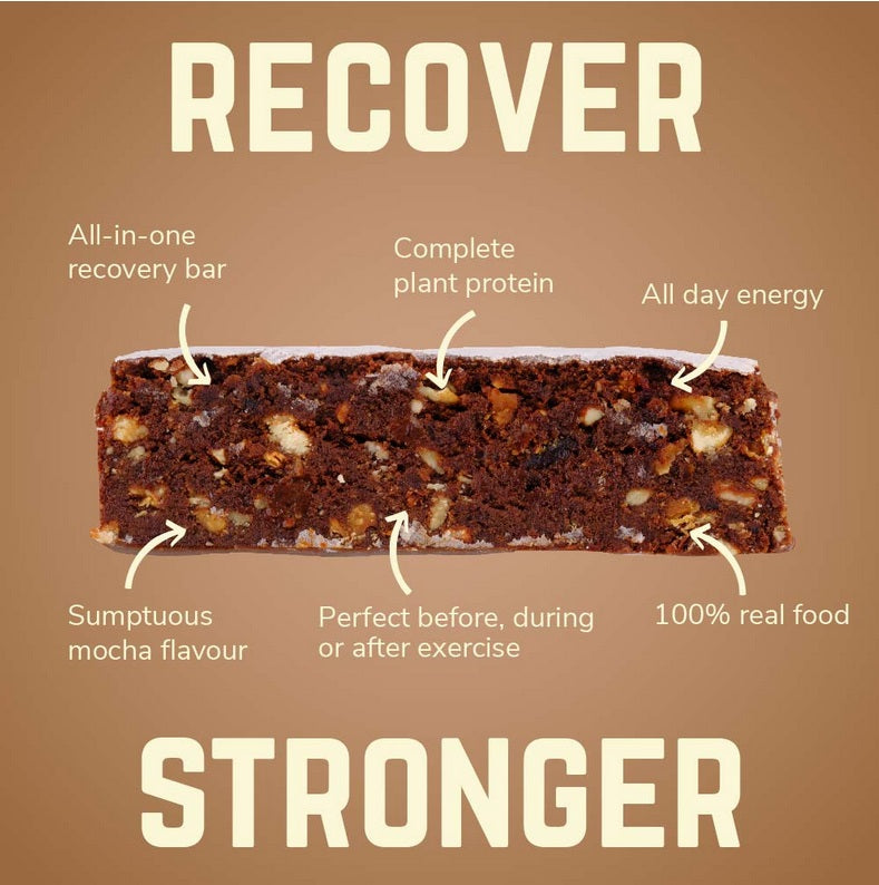Meet the Mocha bar! A rewarding blend of delicious crunchy hazelnuts, smooth hazelnut butter, juicy dates, aromatic coffee, rich cocoa & the power of complete plant protein makes the Mocha Bar the optimal workout refuelling bar.